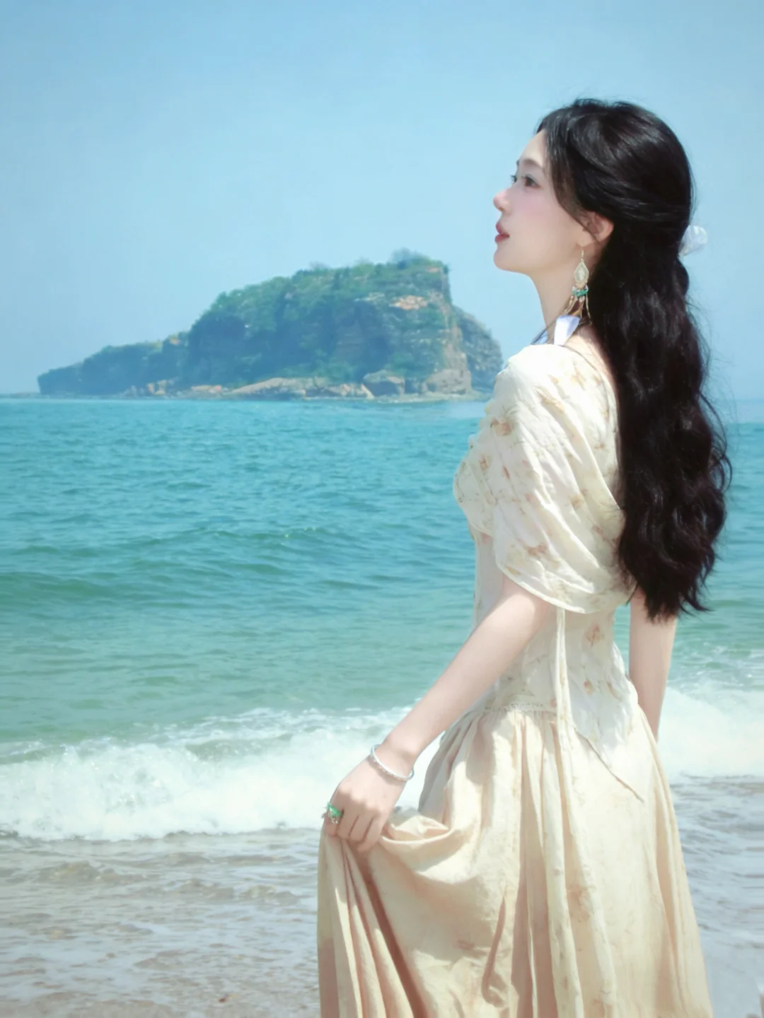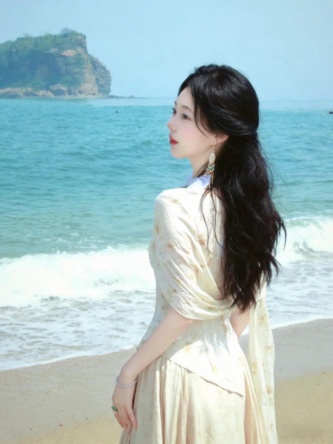 来拍照了 神仙裙子 北方的海边 ccd拍照 白月光 旅行穿搭 银沙滩