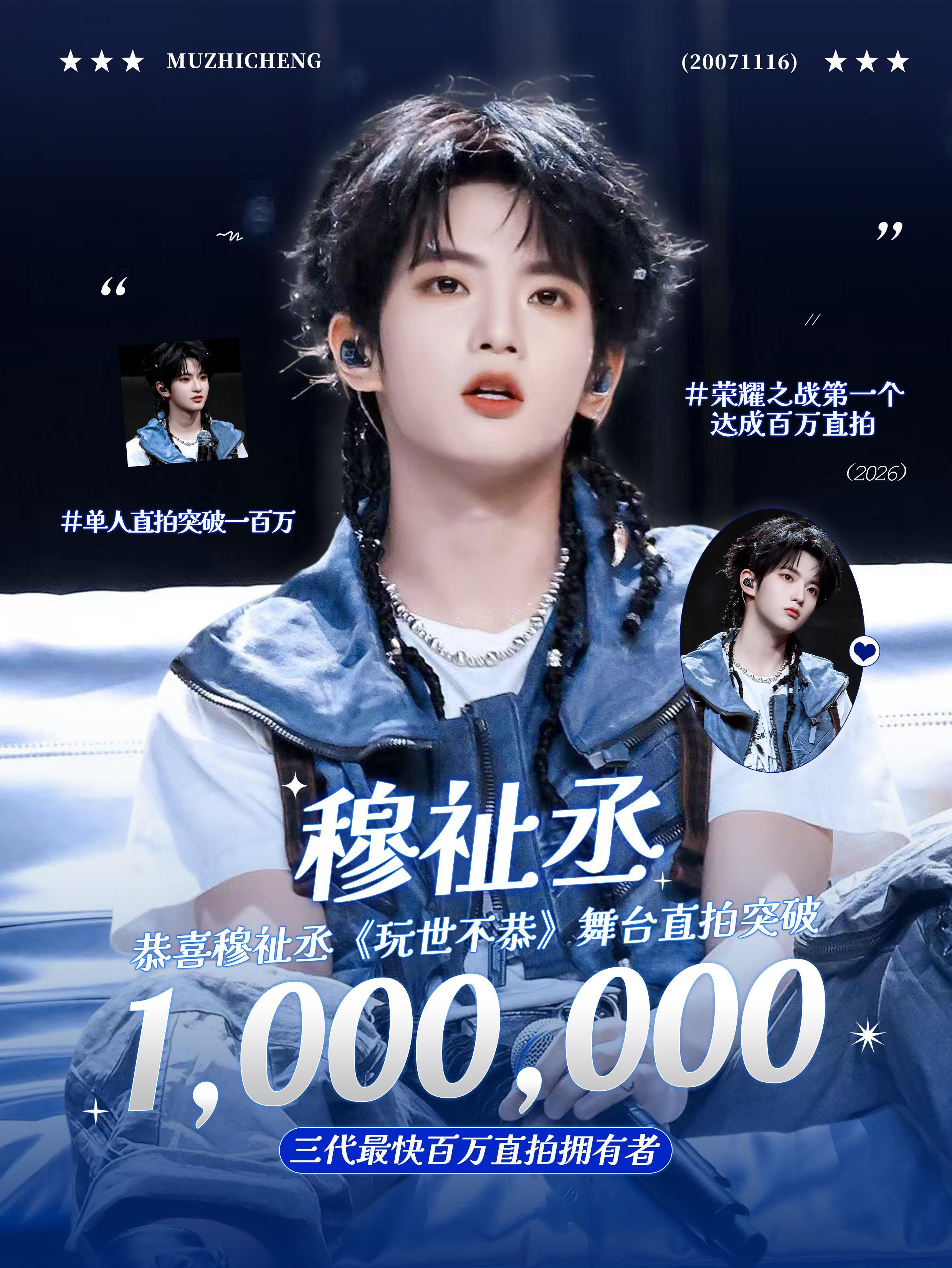 穆祉丞荣耀之战直拍首个破百万荣耀之战三四代第一个拥有三个百万直拍的男人来了💥穆祉丞《玩世不恭》舞台仅用时28.5h播放量就突破了一百万刷新TF家族三代个人直拍破百万最速纪录穆祉丞的舞台实力和小纸团们的爱真的很拿得出手💖穆祉丞发文回应荣耀之战输了