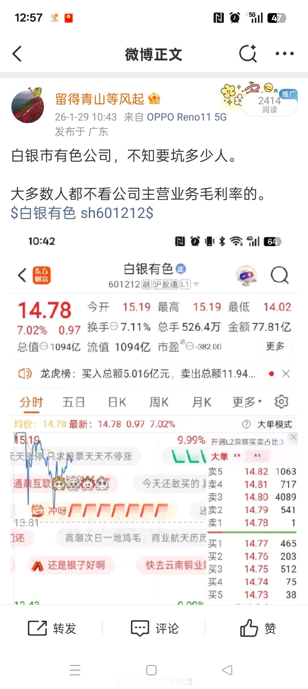 有色之后,化工接力如何,特指没有涨价,困境反转的化工品,比如亏损连年的PVC,如何?白银有色 sh601212[股票]这种垃圾开板回调到位了,我才会看看有色金属 sh000819[股票]。