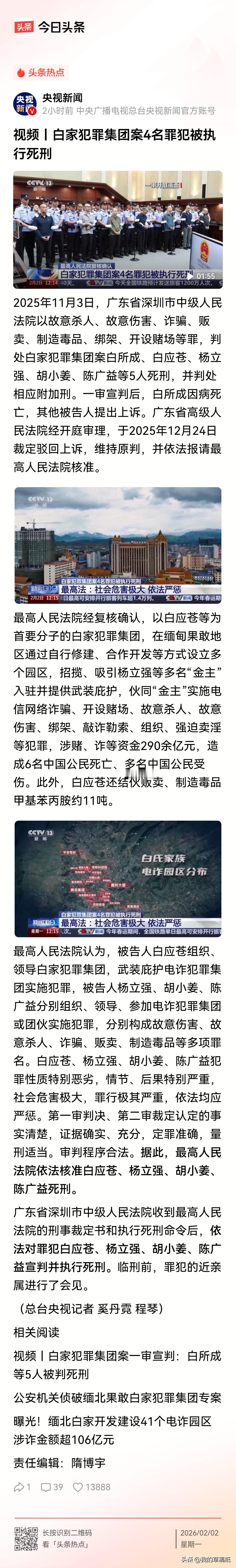 白应苍已伏法,白所成病死狱中。想来也是,七八十岁的年纪,家破人亡,终日生活在恐惧之中,身心如何承受得住。 此外,另有三人同样被执行注射。 明家集团案判完后,刘老发集团也相继获判。正想着白家也快了,却没想到来得如此之快——距离过年仅剩半个月,实在令人唏嘘。 如今,只剩魏家了。看来一切,都将是年前年后的事了。