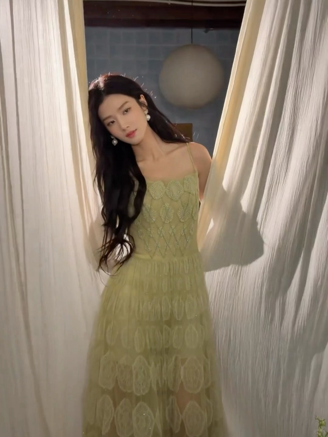 卢昱晓白裙少女,五官精致,灵动柔美。卢昱晓