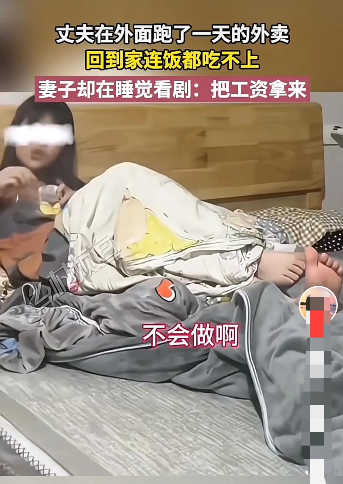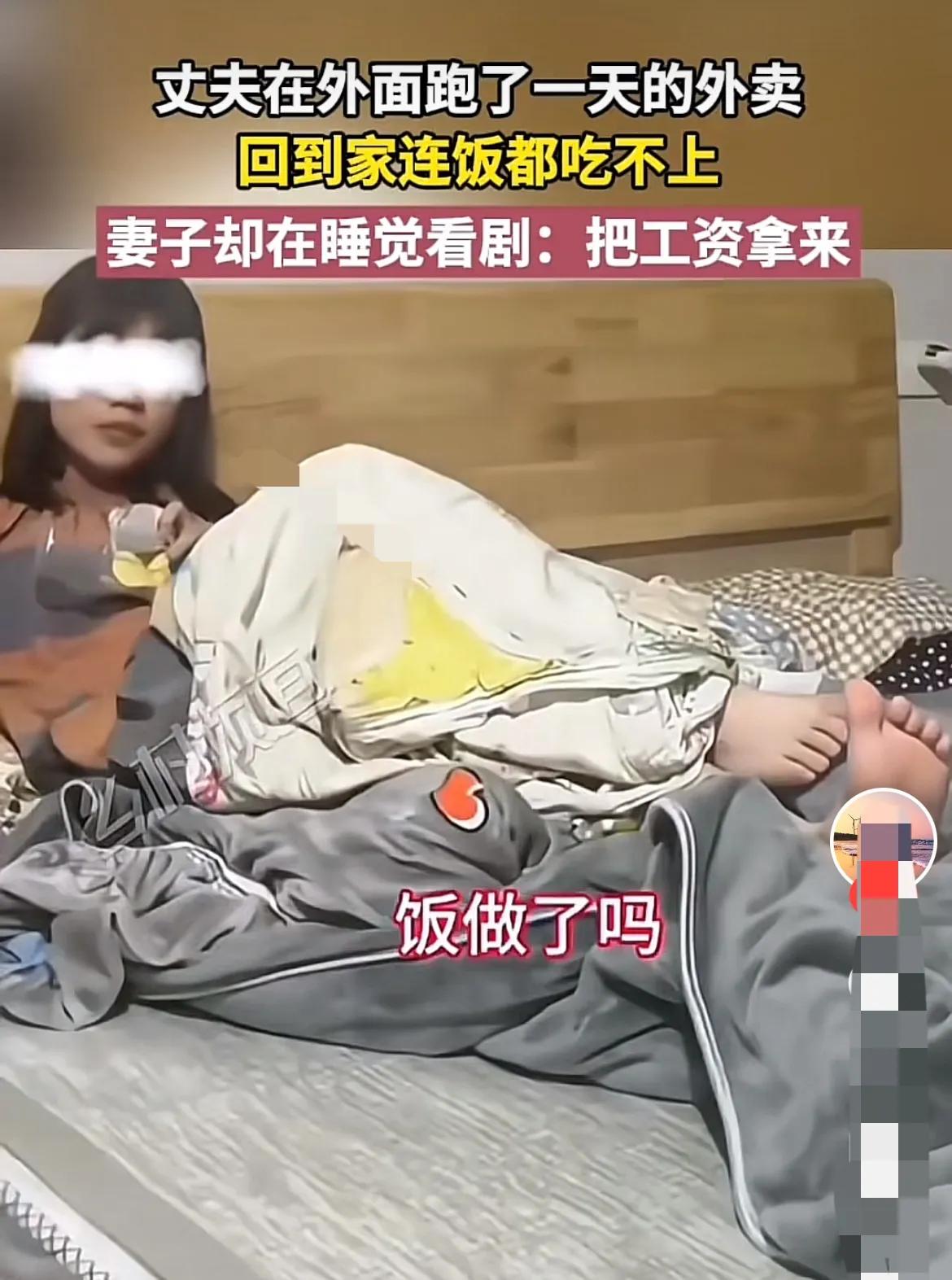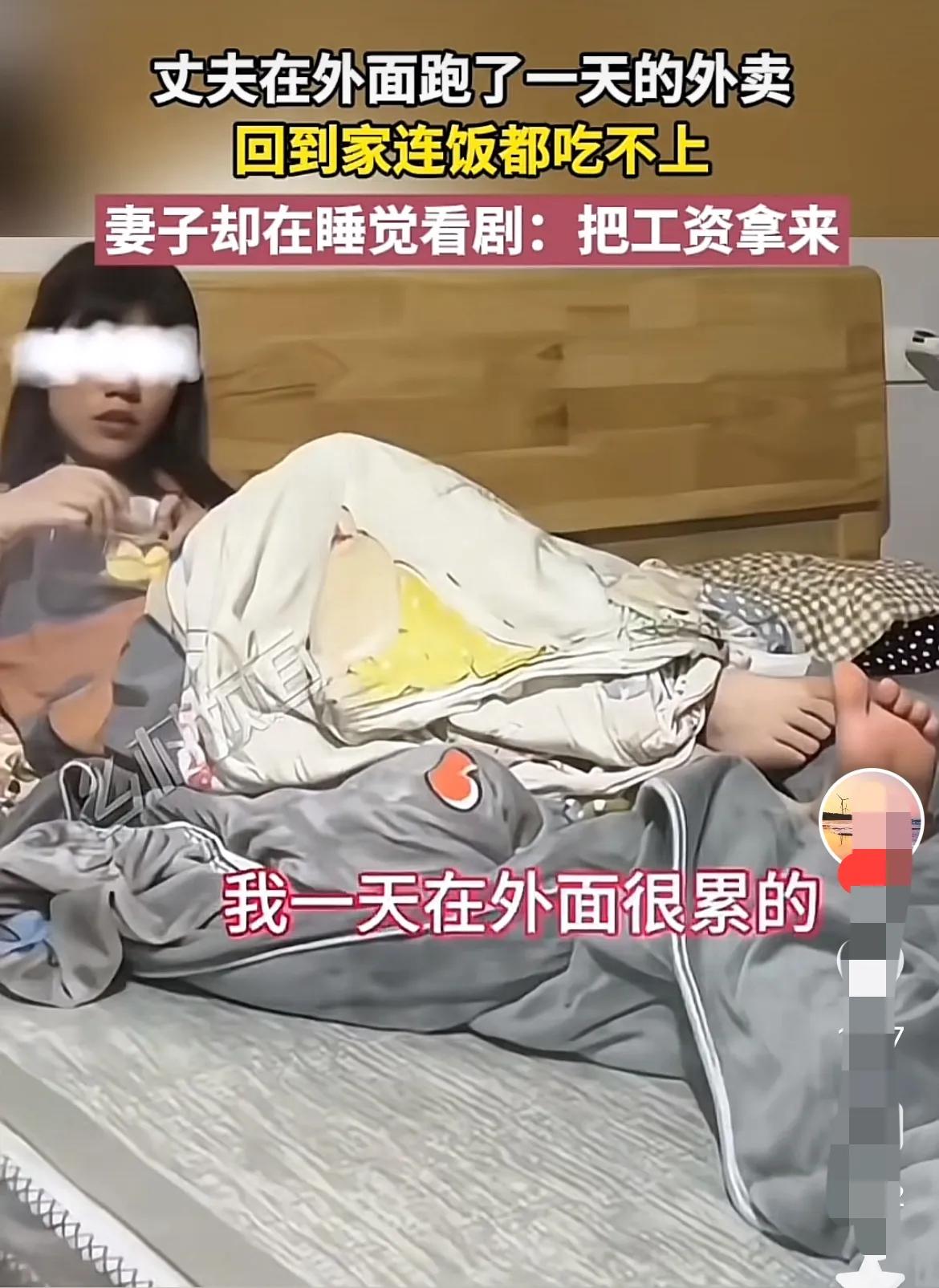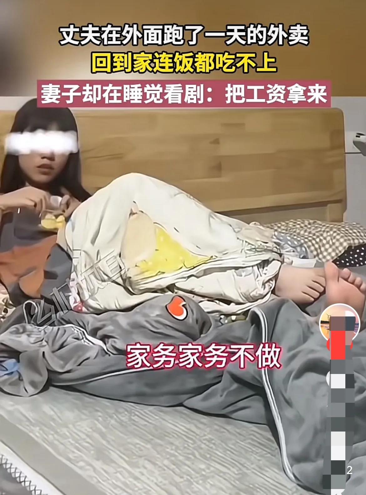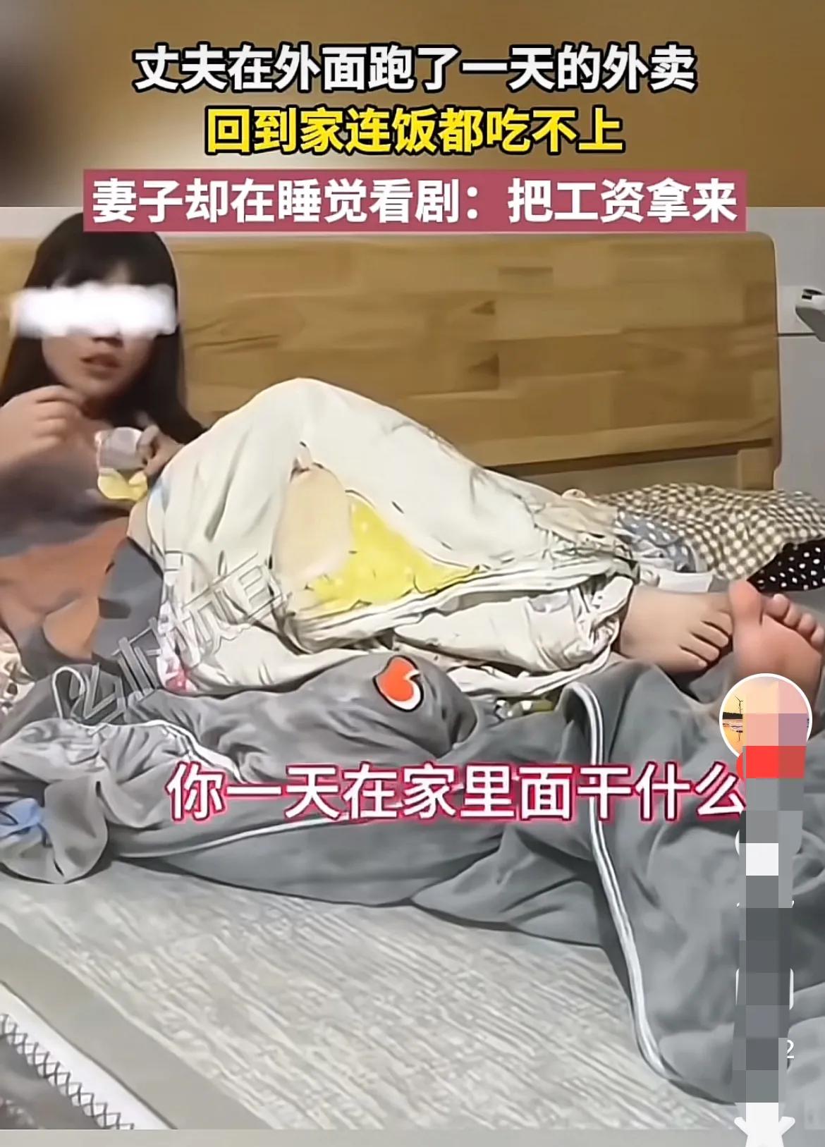 这样的日子真是没法过。 女子在家除了看剧就是睡觉,也不做饭,男人回到家就问发工资
