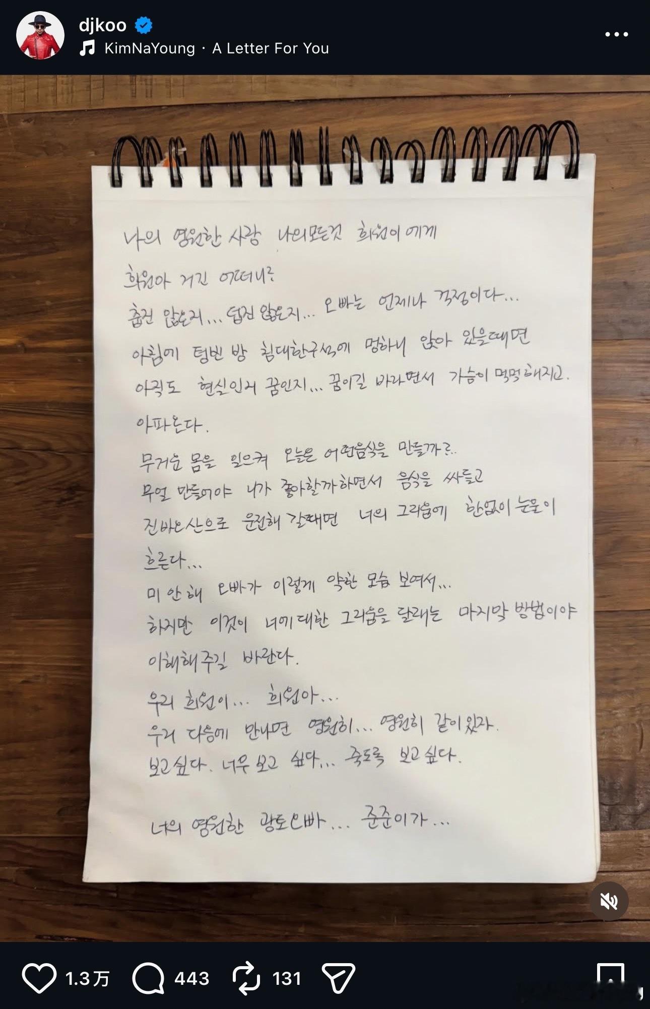 而具俊晔在分享雕像制作全记录之余,也公开了一封给大S的手写信,直到现在他还是无法接受爱妻离世的现实,因为思念而变得软弱感伤。