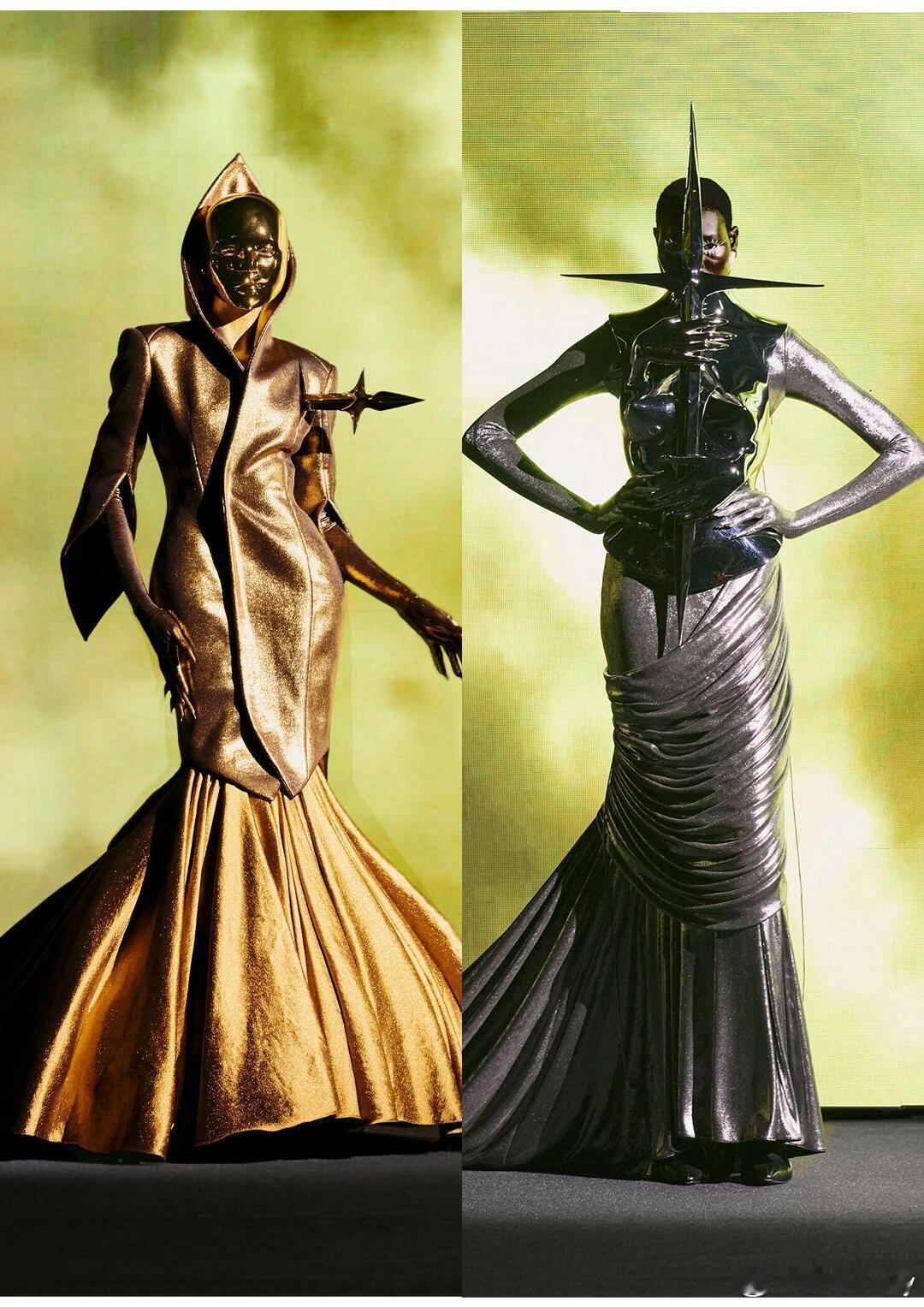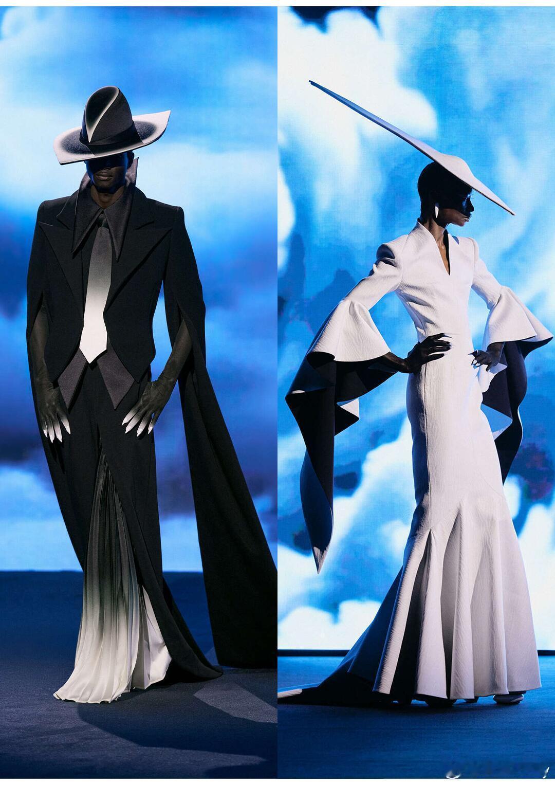 巴黎高定时装周 |大秀直击 RobertWun26春夏高定,巴黎丽都的雷暴光影里,一场以「勇气」为内核的暗黑美学盛宴震撼上演!中国香港设计师云惟俊以三幕剧铺展创作心路,将香港台风记忆、创作挣扎揉进可穿戴的时装诗篇,让高定超越物质,成为写给所有创作者的赞歌。「图书馆」的黑白廓形溯初心,镜像对称消解性别界限,波利罗圆弧肩与紧身胸衣碰撞出极致结构力量;「奢侈」的水晶面具抹去个体,躯干化作珠宝架,隐喻浮华背后的身份消解;「勇气」终章直接封神,40公斤玻璃微珠圆裙重若信仰,银色铠甲配长剑的女战士破幕而出,是对抗质疑的精神呐喊,夸张尖肩与拖曳裙摆交织,将坚毅与脆弱的矛盾张力拉满。撕裂感面料撞液态金属、薄纱缠羽毛,十万颗水晶铺就星空裙,手工刺绣与珠饰镶嵌藏尽匠心;水晶面罩、怪诞手镯勾勒科幻未来感,雷暴色亮片压轴裙在闪电光影里绽放磅礴。黑白主调缀暗红与哑光金属,延续品牌标志性暗黑戏剧风格,回归早期「狂野」创作的同时,以女性赋权为底,让每一寸剪裁都诉说着「创意人皆是战士」的宣言。这不仅是高定,更是一场用工艺与叙事写就的,关于坚守与热爱的勇气颂歌!