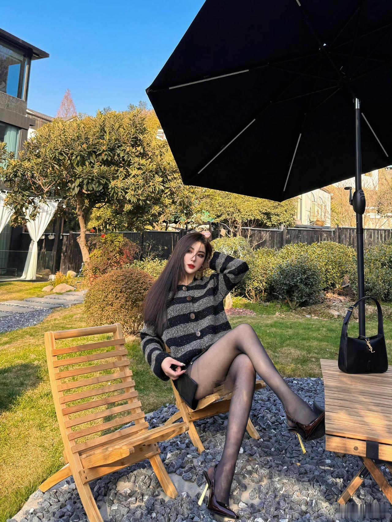 美腿辣妹,黑丝配黑色包臀连衣裙配红底黑高跟配披肩长卷黑发,简直绝了!