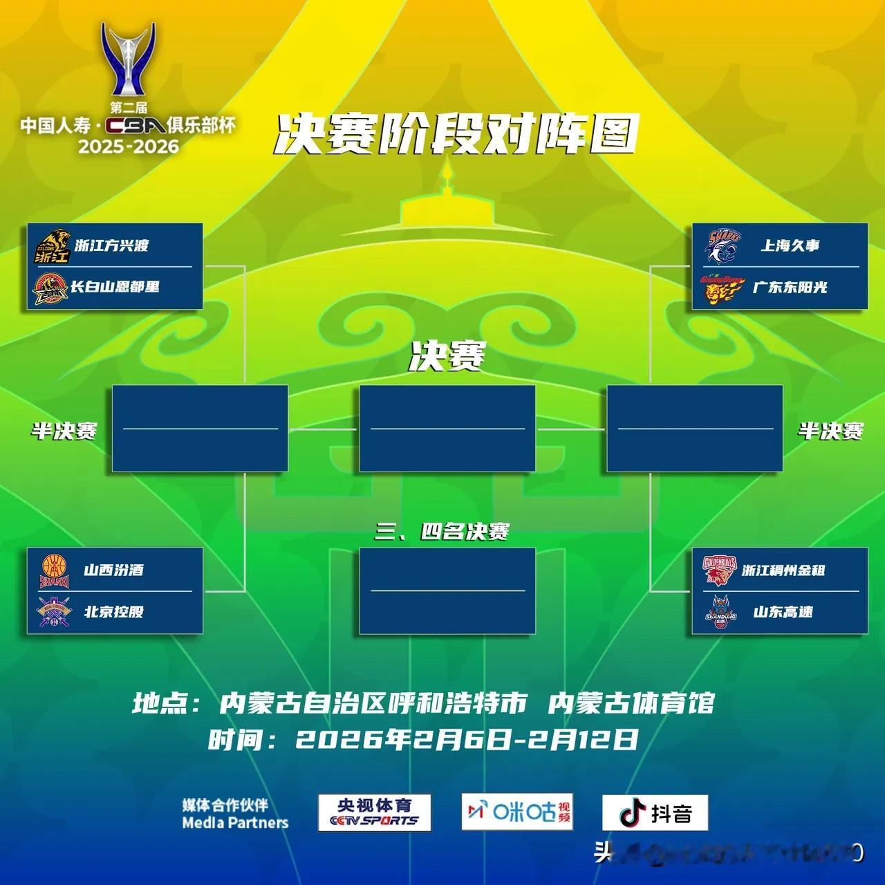 第二届CBA俱乐部杯决赛阶段比赛,将于2026年2月6日至12日在内蒙古呼和浩特
