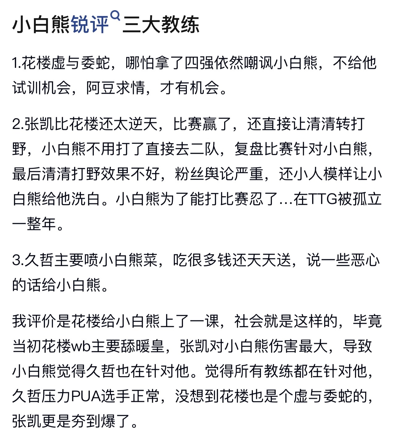 KPL小白熊锐评三大教练