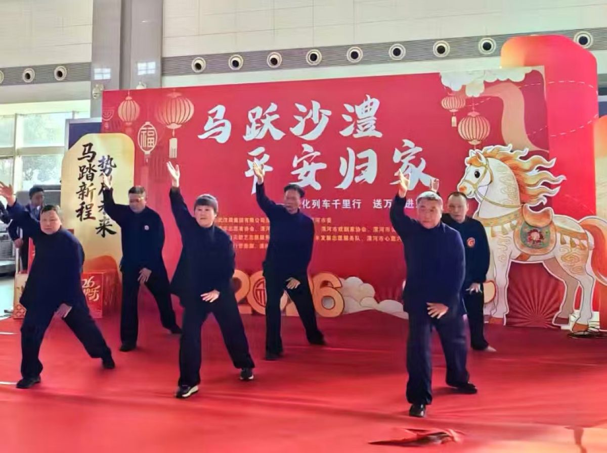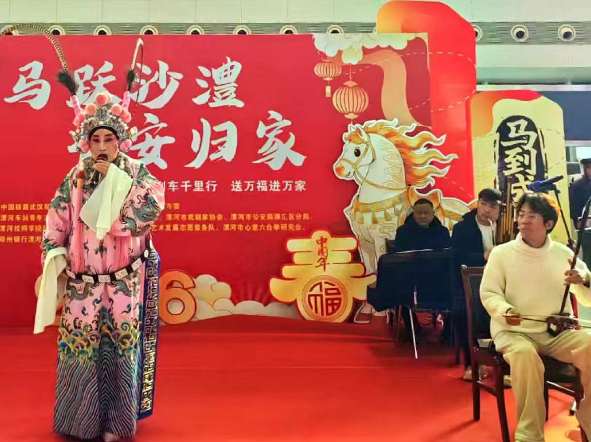 来自沙河调豫剧的演员表演的《黄鹤楼》选段,惊艳亮相引发阵阵欢呼;精彩的心意六合拳表演展示赢得阵阵掌声。车站特别准备的马年“玩偶”更是让候车室的孩子们兴高采烈,不少家长用手机记录下这一温馨时刻。