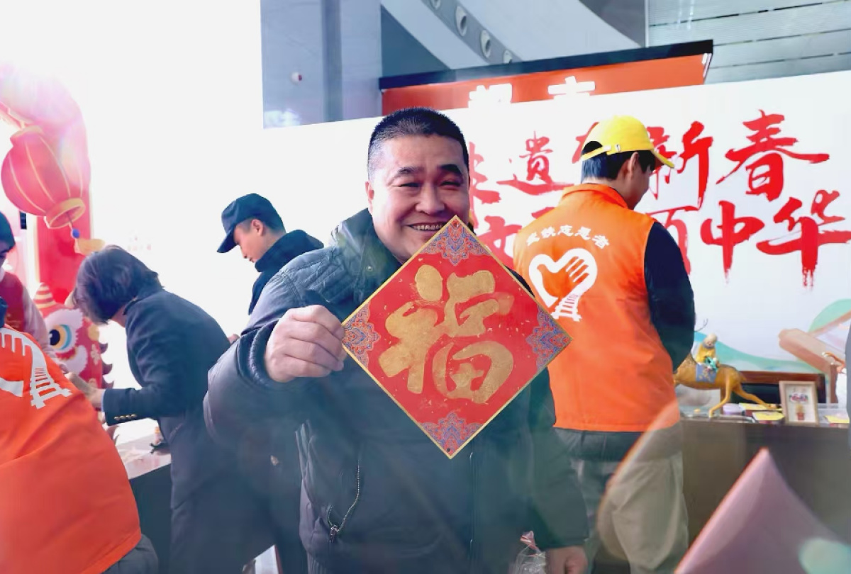 活动现场,书法家们挥毫泼墨,数百幅风格迥异的“福”字和对联在笔锋流转间跃然纸上。旅客们围聚在书写区,纷纷驻足欣赏,不少旅客捧着刚写就的福字和对联爱不释手。“这墨香里的对联比印刷品更有温度!”准备返回湖北老家的刘先生举着对联笑道。