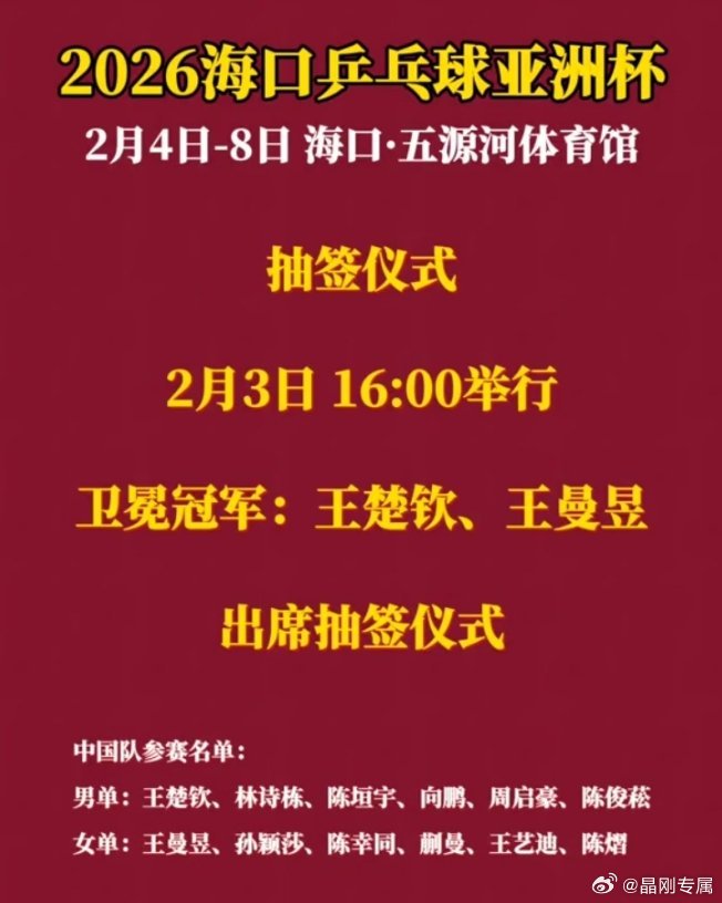 明日(2月4日)起,海南海口五源河体育馆战火点燃 连续五天精彩对决,见证国乒捍卫荣耀!