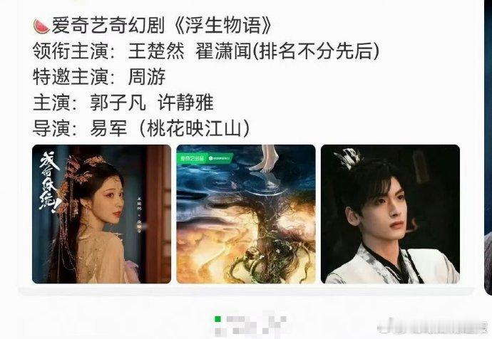 王楚然翟潇闻平番王楚然翟潇闻浮生物语 王楚然翟潇闻《浮生物语》平番官宣,实力对等、默契携手,将以细腻演技,呈现这部超人气幻想妖物志的精彩故事。