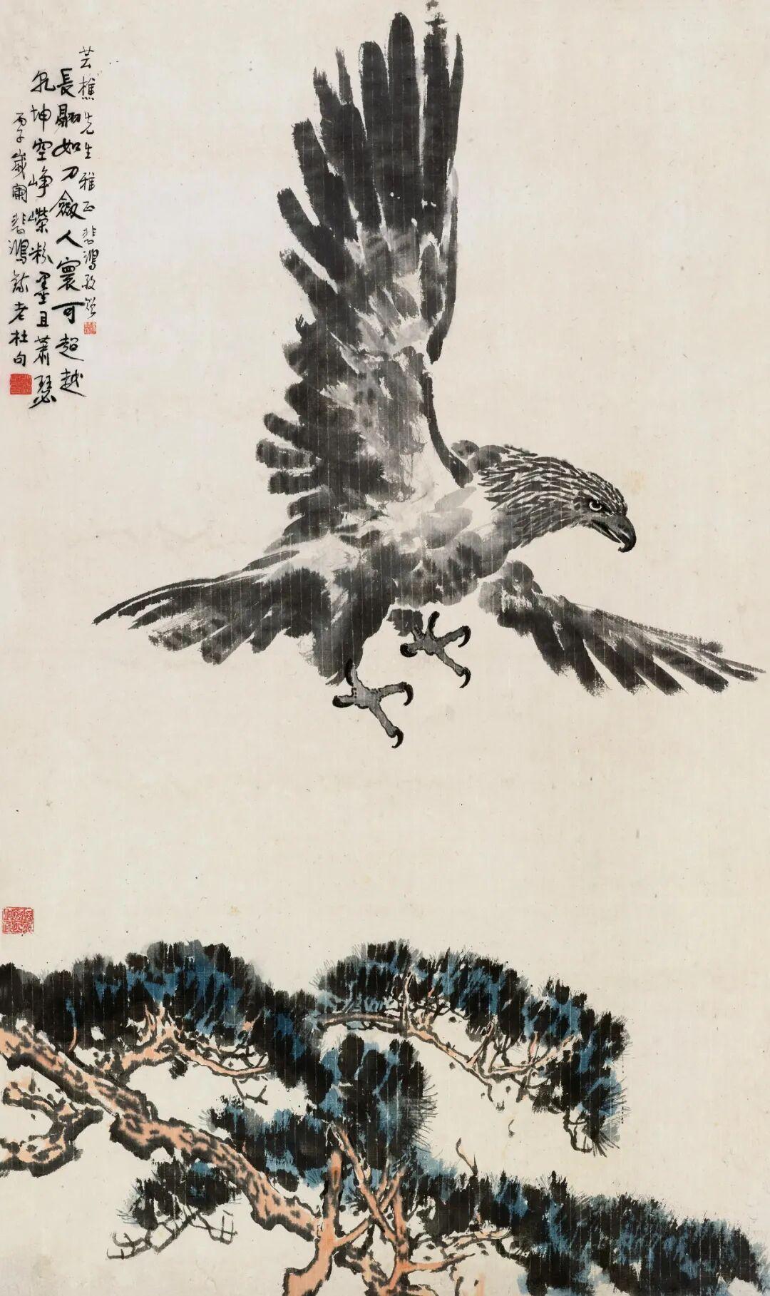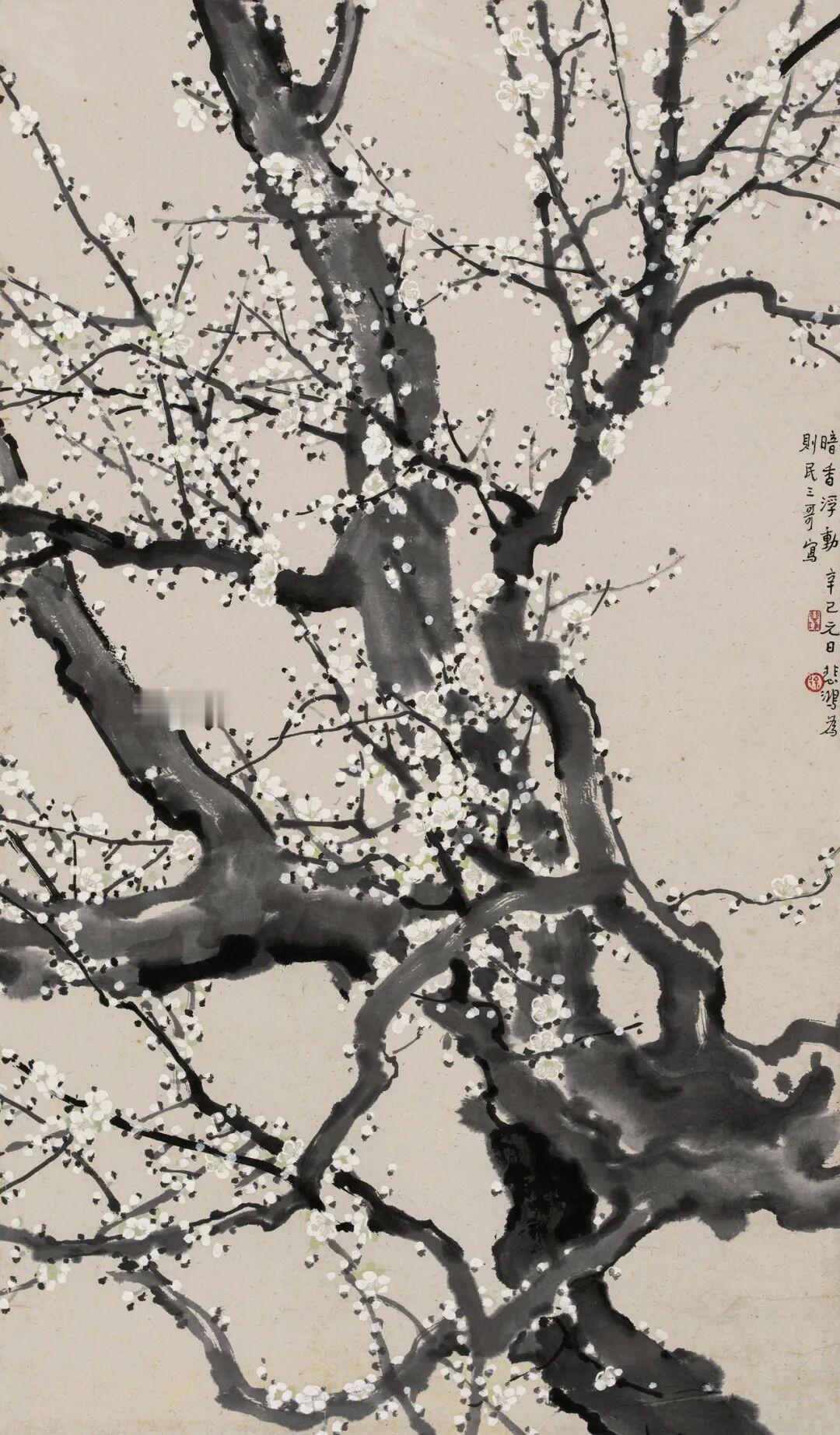 齐白石《梅花八哥》。立轴 水墨纸本133×44cm。题识:人生欢乐几多时,常
