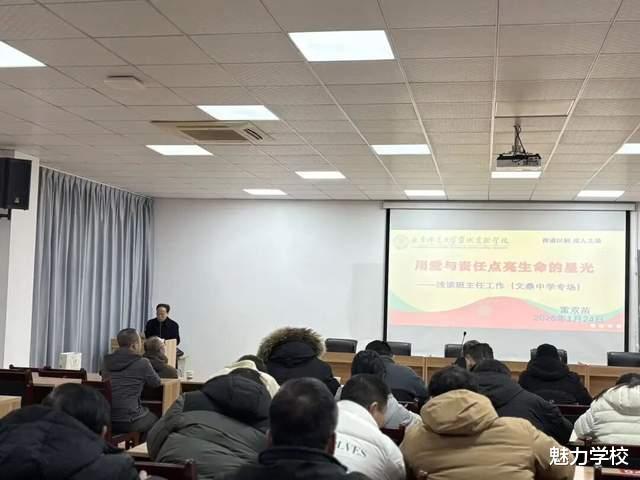 教育是一场温暖的修行,班主任则是这场修行中最坚定的践行者。为进一步筑牢立德树人的根基,提升班主任队伍的专业素养与育人能力。近日,安徽省宣城市文鼎中学特邀北师大宣城实验学校高中部教学主任雷双苗,开展以“用爱与责任点亮生命的星光——浅谈班主任工作”为主题的专题讲座。全体班主任及骨干教师齐聚一堂,共赴这场聚焦育人初心、深耕班级管理的思想盛宴。
