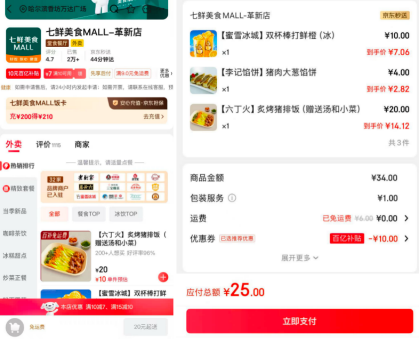 七鲜美食MALL哈尔滨首店,是京东融合“外卖+到店”的第一个成功案例,但不会是唯一一个。