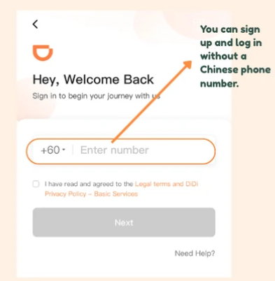 Step 2.Sign up& choose how to use DiDi Step
