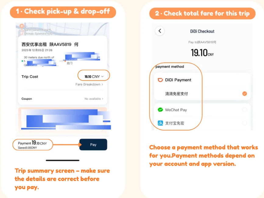 ·Tap "Pay"to finish your trip. If something looks wrong, check with the driver or contact support first.