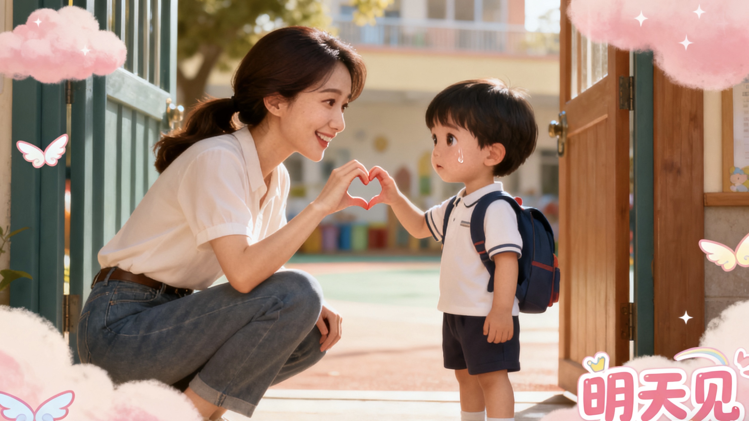 亲子共创一个只有你们懂的暗号:双手比爱心+碰额头=“能量传输完成”。每天离别前做一遍,暗示“爱已存档”。