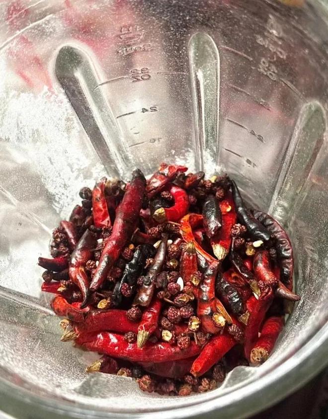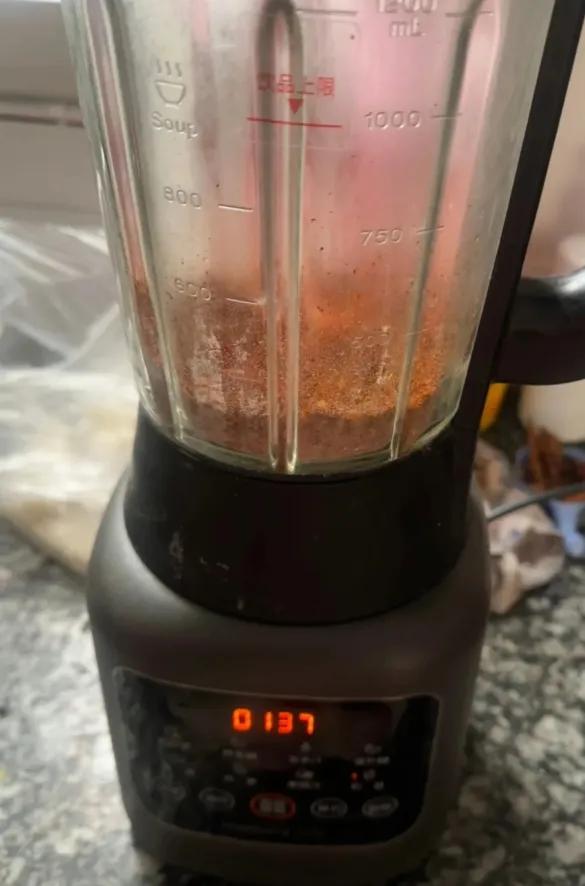 只需要把辣椒洗干净晒干,或者不洗直接用,倒进破壁机里后,启动“搅拌”按键,一次不够就多来几次。