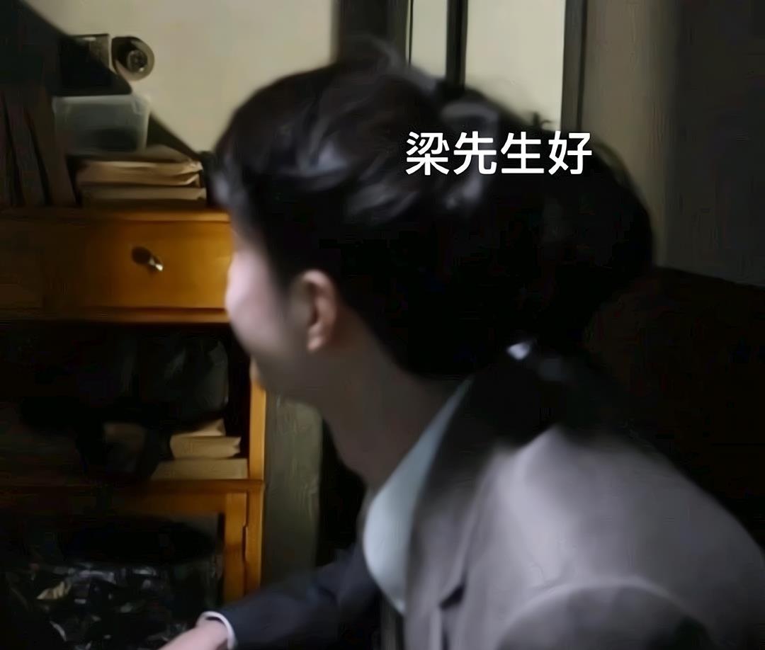 看到梁先生过来,他们俩人赶紧起身示意,随后配合梁先生,礼貌性地回一个笑,随后立刻不知道该干嘛了,不说话,不对视,都开始拘谨着,一个赶紧撩一下头发,故作镇定,另外一个双手交叉扣在一起,紧张吗?特别王一博那个交叉的手,隔着屏幕感觉手都在冒汗,估计都快扣秃噜皮了吧。