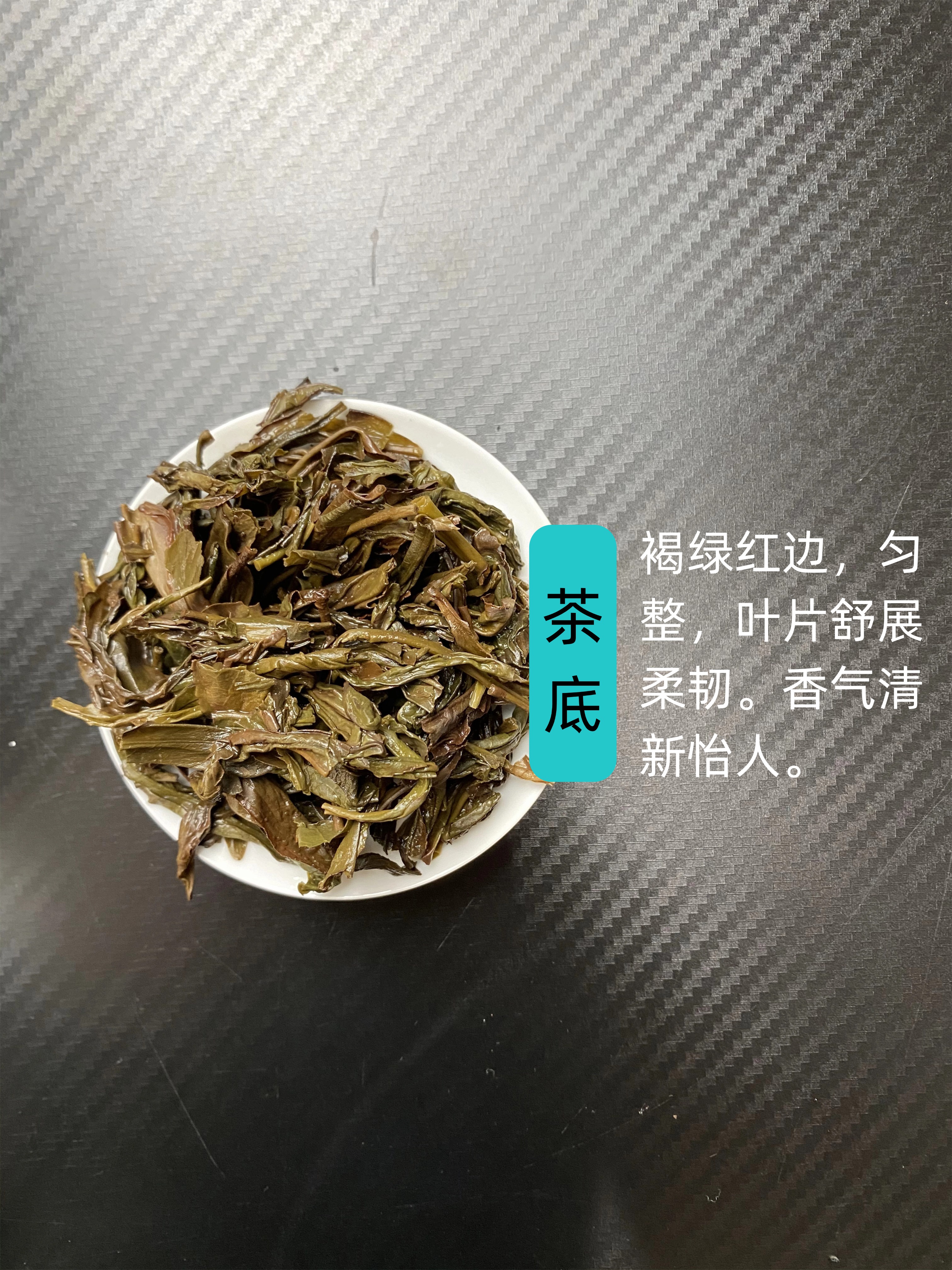 叶底,褐绿红边,匀整,叶片舒展柔韧。香气清新怡人。
