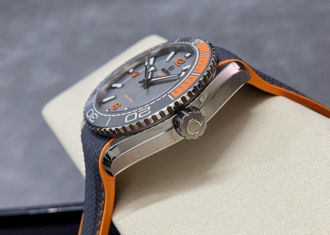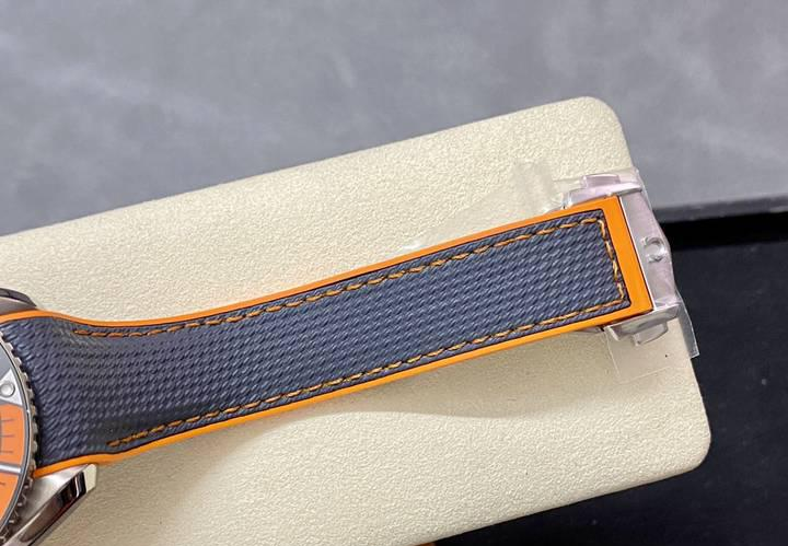 表带采用一幅高质量的天然橡胶表带,搭配欧米茄经典折叠表扣。如果你喜欢欧米茄的海洋宇宙600米,又想体验轻盈的佩戴手感,这款VS厂钛壳四分之一橙,值得推荐入手品鉴。