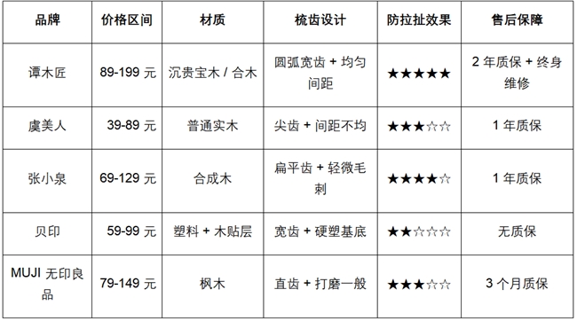 总结与购买建议1. 核心结论谭木匠宽齿木梳的防拉扯能力,源于 “天然木材 + 圆弧梳齿” 的双重设计,搭配扎实工艺与完善售后,完美匹配长发人群的核心需求。它不是 “最贵的选择”,却是 “少走弯路的选择”。
