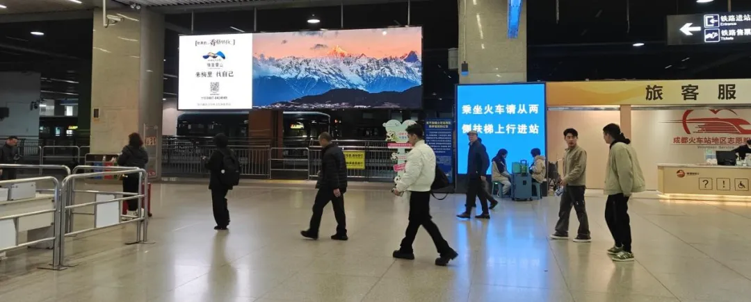近日,来往于成都高铁站的旅客们惊喜地发现,站内核心区域被一幅幅壮美的雪域画卷点亮——世界的“香格里拉”携冬日冰雪盛宴,跨越山河,温情来袭!
