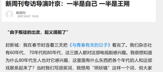 《新周刊》新周刊专访导演叶京:一半是自己 一半是王朔