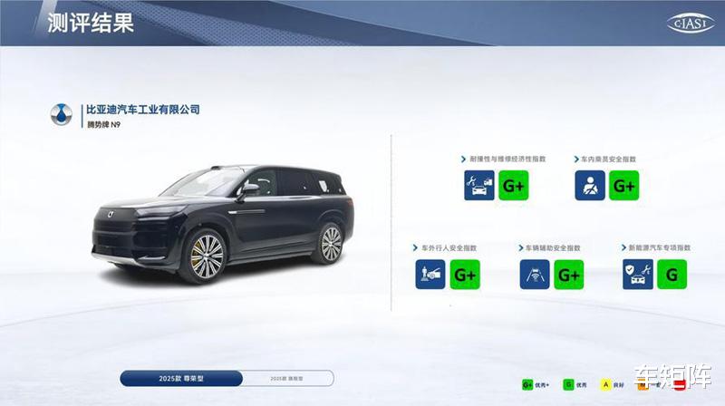 在日前中保研公布的2025第二批碰撞测试车型中,腾势N9在全部五项测试中均获得最高评级,成为本批次实现全优“大满贯”成绩的新能源车型。