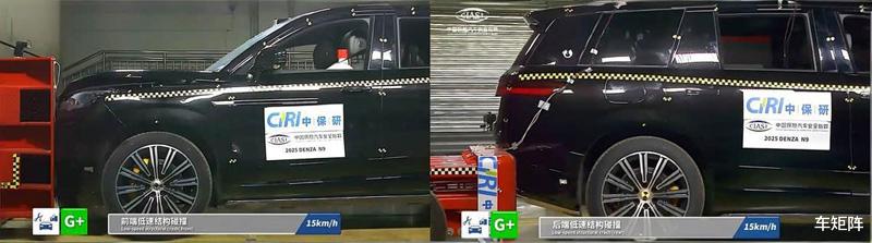 官方数据显示:腾势N9在前四项的测试中均获得“优秀+(G+)”,在新能源汽车专项安全指数中获得“优秀(G)”评价,其中在耐撞性的测试中先后以15km/h前后低速碰撞、64km/h正面25%偏置碰撞及50%偏置碰撞等科目展开,腾势N9均获得优异表现,在车外行人安全及辅助安全测试中行人与骑行者自动紧急制动系统(AEB VRU)测试获满分,并且在新能源专项测试如托底与刮底等项目均全部通过。