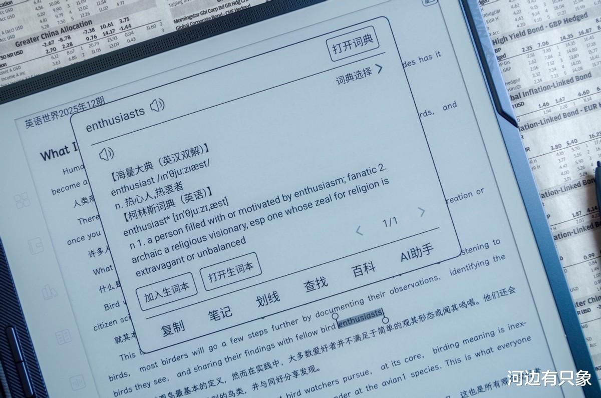 还要提一下的是汉王的贴心——生词本功能,我们在遇到不认识的词汇可以添加到生词本上,后面再使用生词本APP进行复习。可见汉王M10在阅读体验上更优。