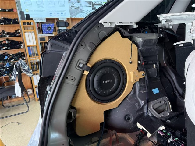 弗莱德10寸低音配备了专用箱体,将其安装在尾箱侧边的原位位置,专用箱体能够更好地优化低频响应,让低音表现更集中、更有力量。值得一提的是,整个安装过程完成后,技术人员对尾箱内饰进行了完美还原,升级后的低音系统完全隐藏在尾箱内部,从外观上丝毫看不到改装痕迹,兼顾了实用性与美观度。