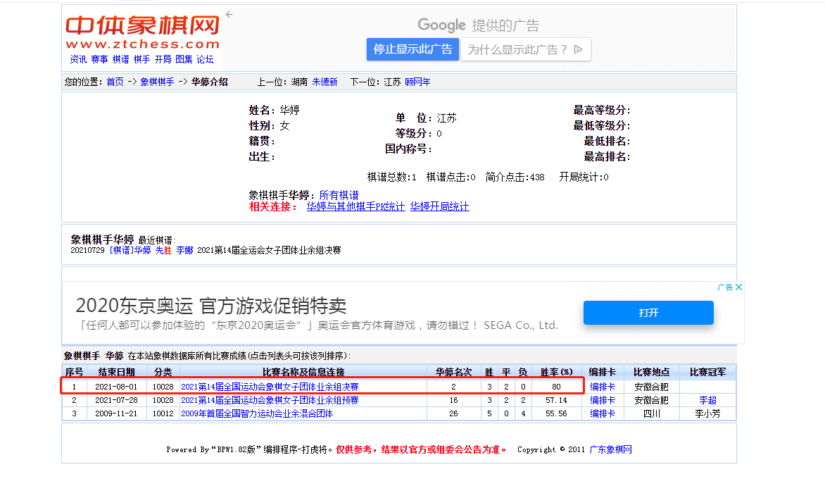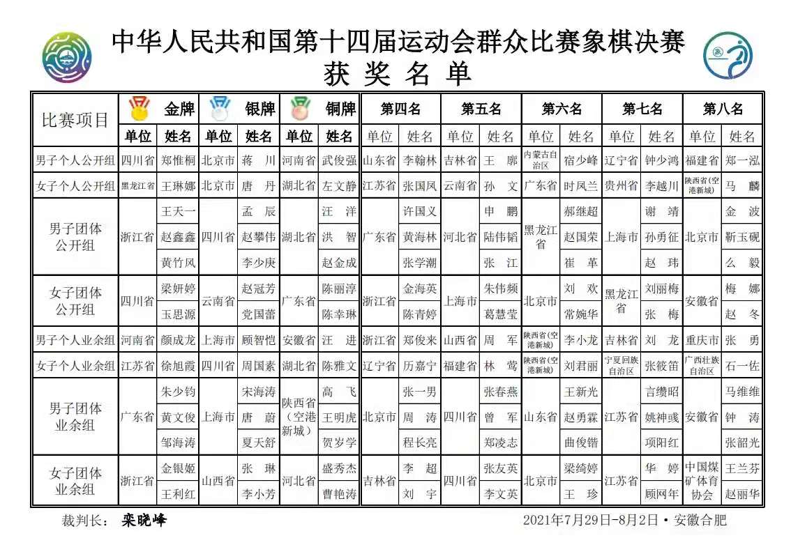 7月31日,第十四届全运会决赛第五轮比赛落下帷幕,南京华婷坐镇江苏女子团体业余组一台,凭借决赛5轮3胜2和的精彩发挥,个人积分排名小组第2,团体成绩获得第七名。