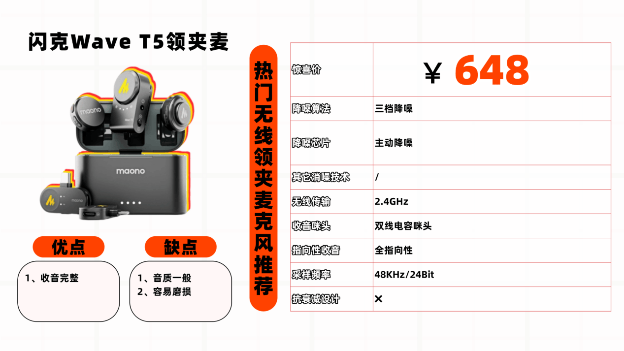 很多人误以为无线领夹麦克风只适合专业创作者,实则日常录制、直播、会议等场景都离不开它。数据显示,普通设备内置麦克风收音模糊,环境杂音过滤差,直接影响内容质感与沟通效率。但市面上不少低价无线领夹麦克风暗藏隐患,不仅普遍虚标传输距离与降噪参数,实际收音效果不佳,还存在连接不稳定、续航缩水的问题,很多劣质产品还会出现音画不同步、电流声明显的情况。