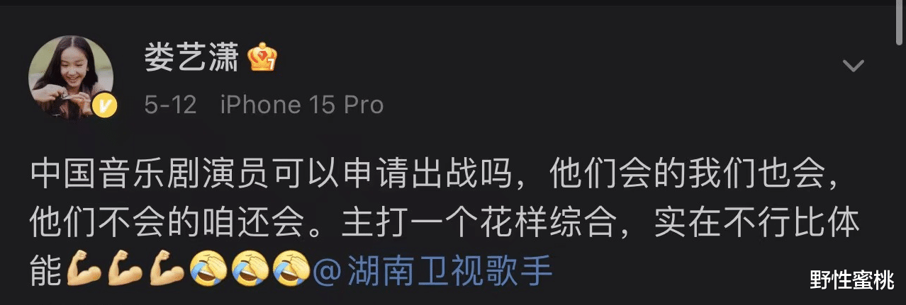 网友A:“娄艺潇在音乐方面的才华也是有目共睹的,她有权利展示自己的多才多艺。支持她上《歌手》!”