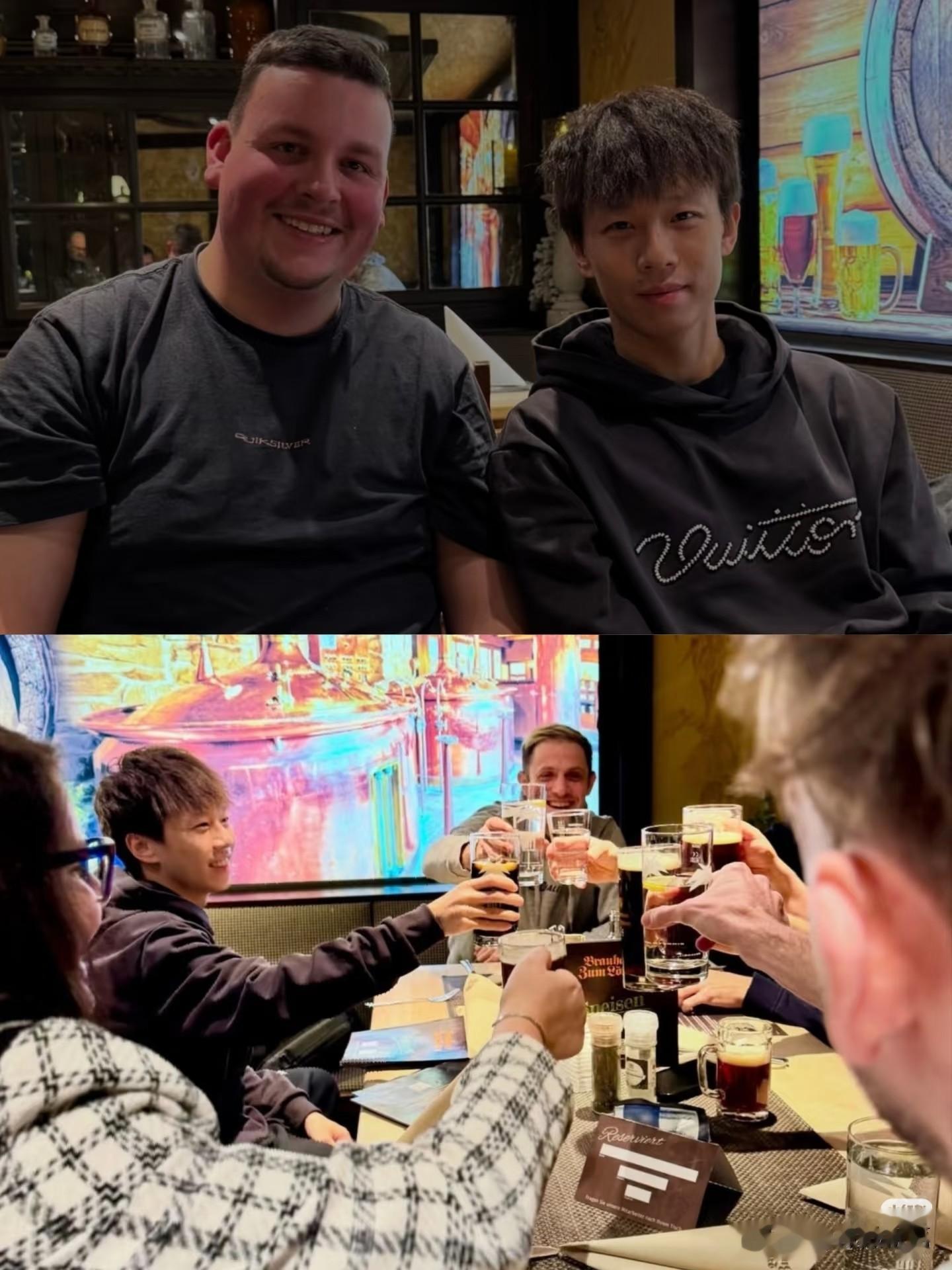 德国和北京有时差,那里的晚上就是北京时间的凌晨了,去了以后林高远还得稍微倒一下时差了。俱乐部还给高远接风了,大家聚餐的时候一起举杯,看他们在一起真的很开心啊。今天林高远也要开始训练了,下午俱乐部肯定也会发林高远训练的动态,出去打球挺好的,快乐乒乓。
