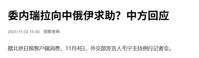 没想到 11 月 4 日外交部记者会,有记者直接询问中方如何看待委内瑞拉向中俄伊求购装备,这一提问无意间契合了特朗普想探明中方立场的潜在诉求,相当于把他藏在心里的疑问摆到了台面上。