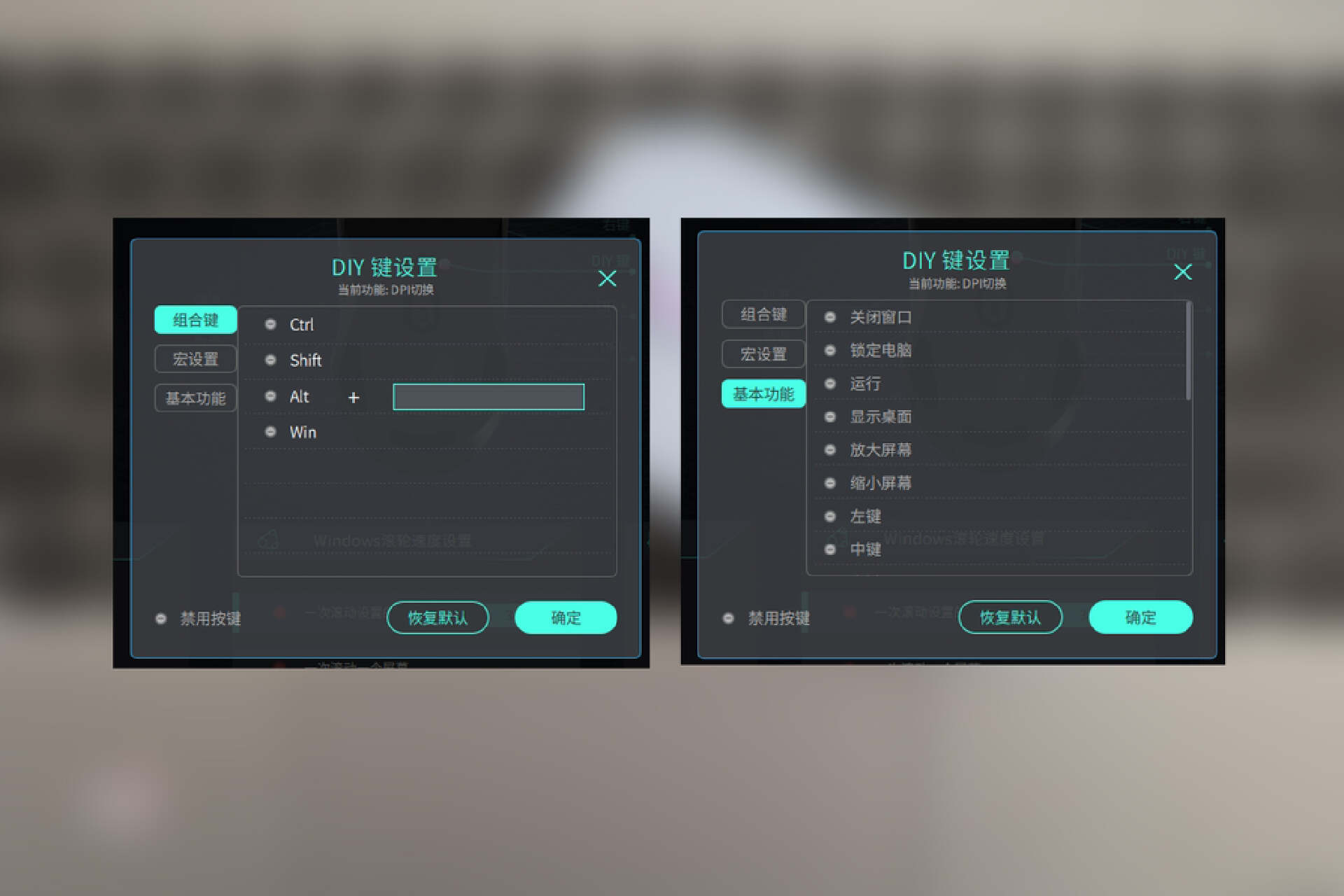 此外,通过雷柏的驱动程序,还可以实现诸如指针移动速度调整、滚轮设置、USB报告率等等设置。