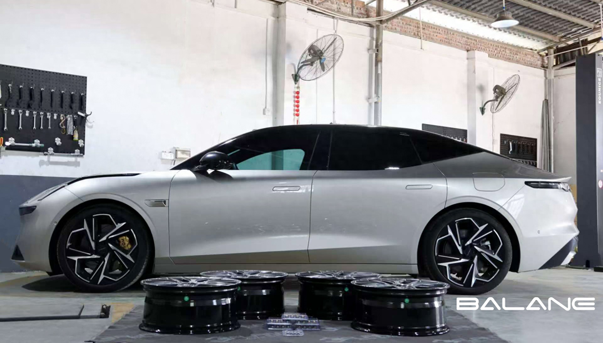 百伦斯专业改装人员会先开箱检查新轮毂,仔细确认漆面是否完好、数据是否正确、配件是否齐全。确认无误后,使用千斤顶将车辆抬起,拆卸原车轮毂轮胎,并统一保管原车配件。随后严格按照标准流程安装新轮毂,拧紧螺丝,完成安装后路试,最后交车。