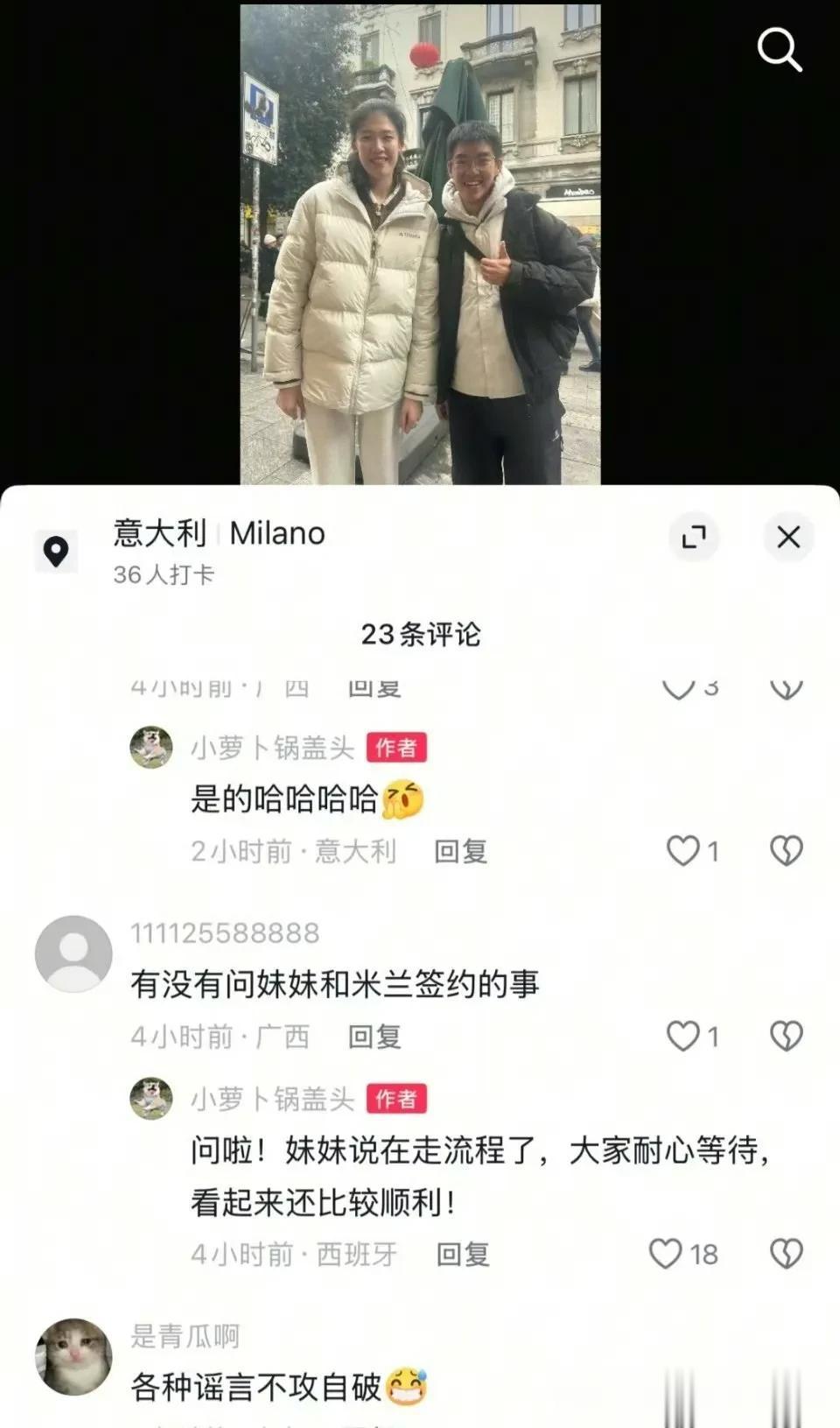 另外一边,有网友在意大利米兰遇到了李盈莹,网友问她是否与米兰女排签约,但是李盈莹回复还在走流程中!