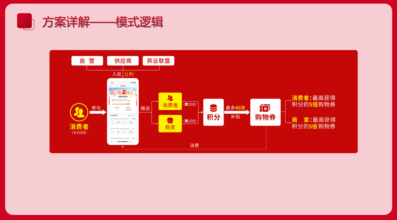 消费者最高可获得5倍于消费额的购物券奖励,显著提升购买力;商家则通过提供优质服务或产品获得相应回报,形成良性循环。例如,顾客花费200元,有机会获得最多1000元的购物券,这种激励机制吸引更多人参与平台交易,同时促进商家收益增长。