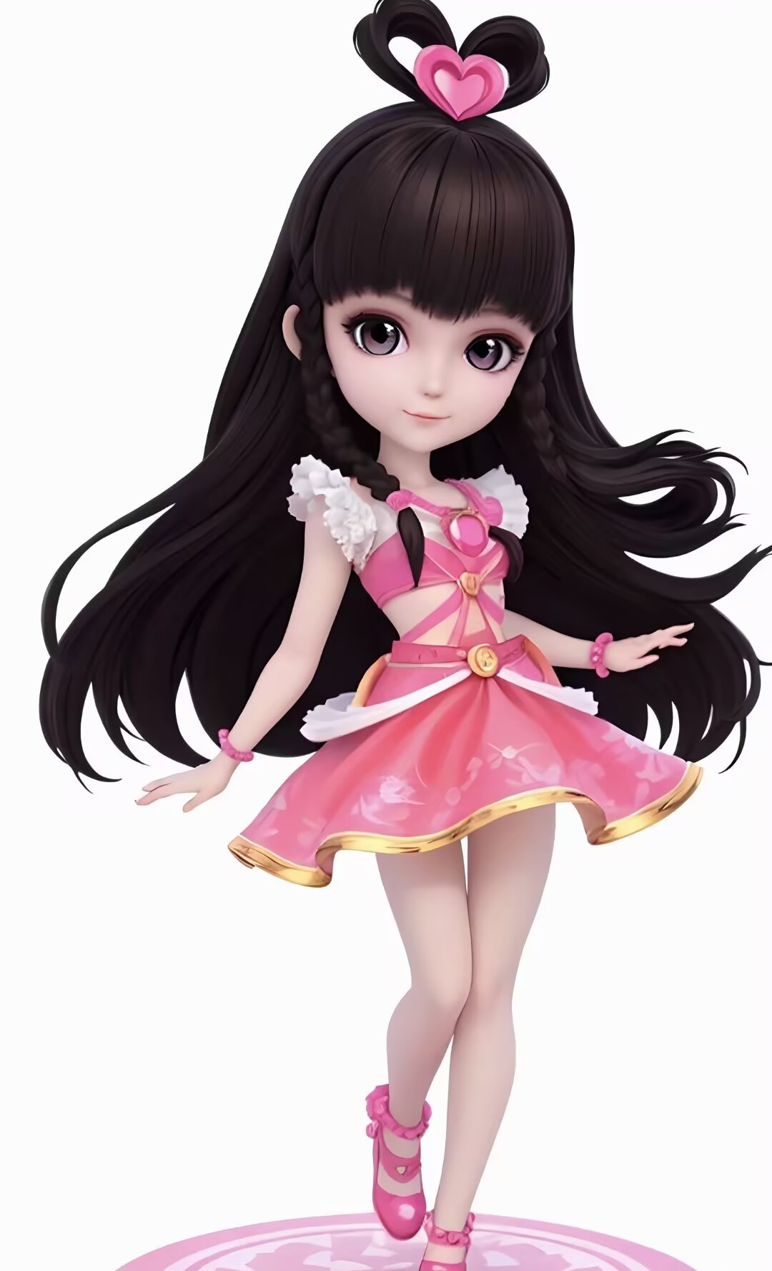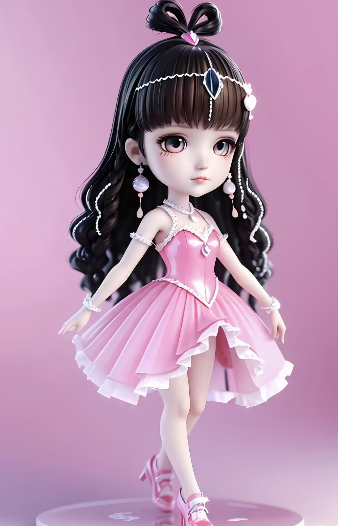 那么说到粉色的Q版王默也同样来了一个造型,这个AI造型一看就是来自于叶罗丽番外默水语中,那时候的她已经换成了齐刘海,穿上了粉色的小洋裙,连配饰都是海洋系列的造型,在变成这个Q版时王默的长发变成了卷发,皮肤更加白皙了。