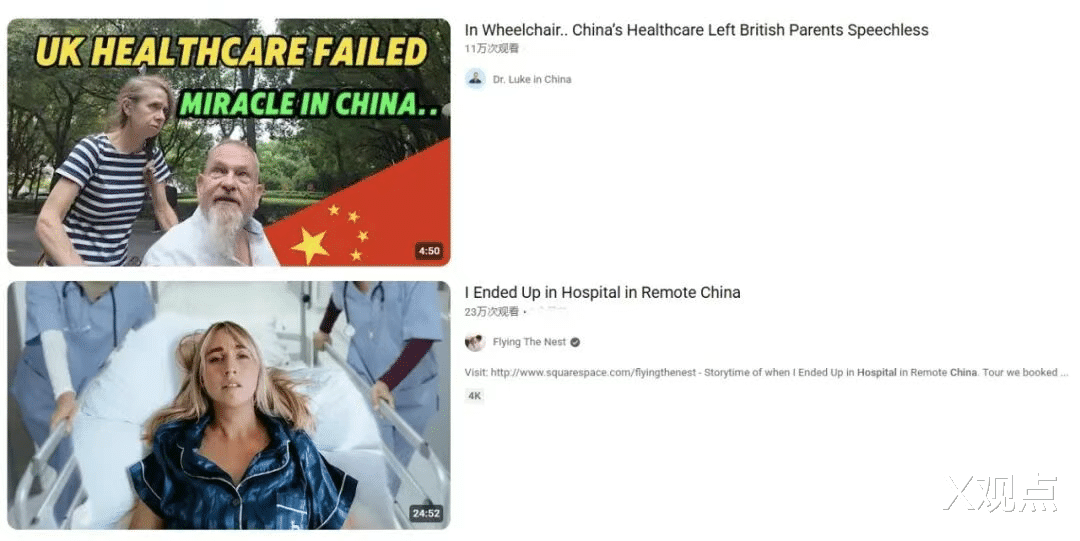 这些视频配上热血沸腾的BGM,展示着外国友人在自助机前流畅挂号、志愿者手把手帮助、当天完成检查甚至手术的场景。
