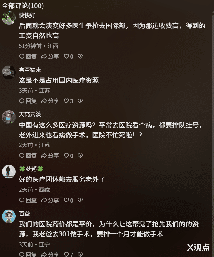 你大可不必担心"外国人抢走我们的医疗资源"。真正该担心的是,当我们沉迷于"逆袭"叙事时,那些真正需要优质医疗的普通人,是否得到了更好的服务。
