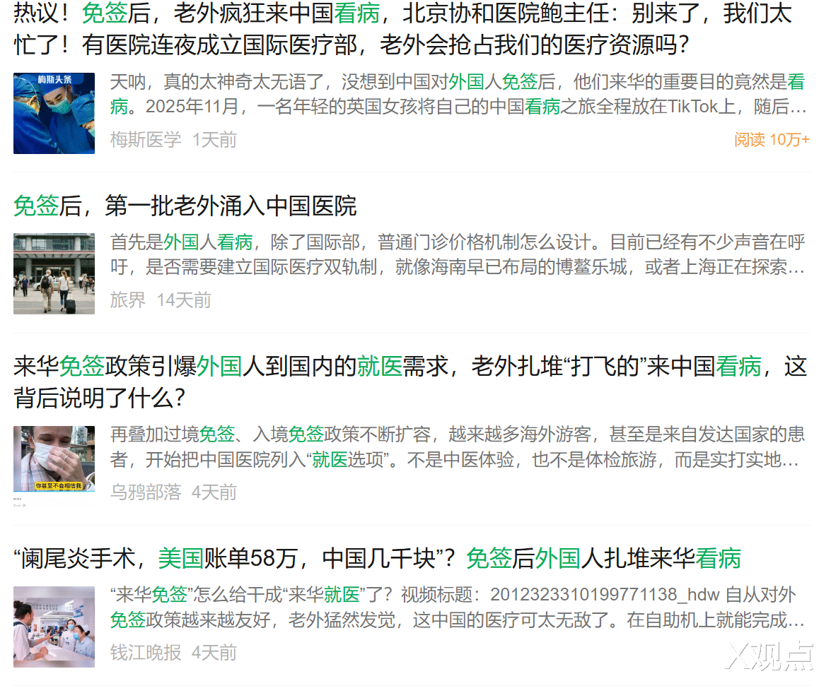 最近,你的朋友圈和短视频平台是不是被这样的内容刷屏了?“来华免签变成来华就医了!老外打飞的来中国看病,被我们的医疗效率惊