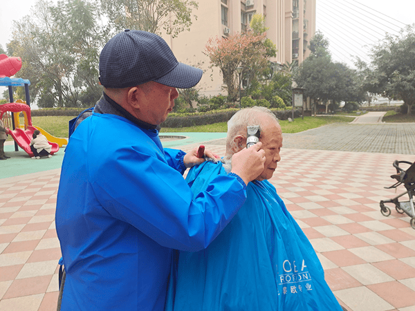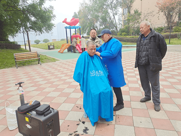 12月1日,重庆市涪陵区江东贵博东方明珠小区暖意融融,小区5栋退役老兵黄诚谊在5-6栋间的游乐场开展免费义务理发服务,专项为居民提供男士平头修剪,以实际行动践行退役军人初心使命,为邻里生活送去便利与温暖。