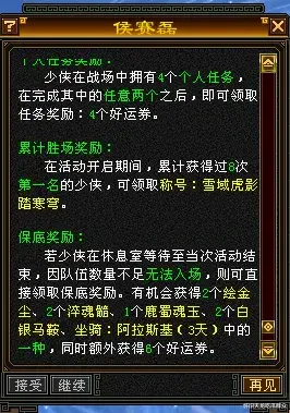 组队1人变身,其余人帮忙干仗。有任务和排名,奖励不同给。主要包含好运券、绘金尘、淬魂髓、鹿蜀魂玉、白银马鞍和限时坐骑:阿拉斯基。