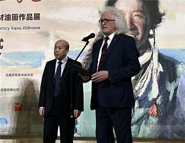 白俄罗斯国家美术馆馆长普罗科普措夫主持开幕式并首先致辞。他讲到,此次展览是白俄罗斯美术界的一件盛事,韩玉臣西藏题材油画作品的语言风格、表现手法,尤其是作品中对藏民族精神面貌的刻画,色彩强烈,笔触灵动,充满生活气息,与白俄罗斯现实主义绘画中对人性的发掘,对自然的歌咏一脉相承,必将在白俄罗斯美术界产生久远的影响。