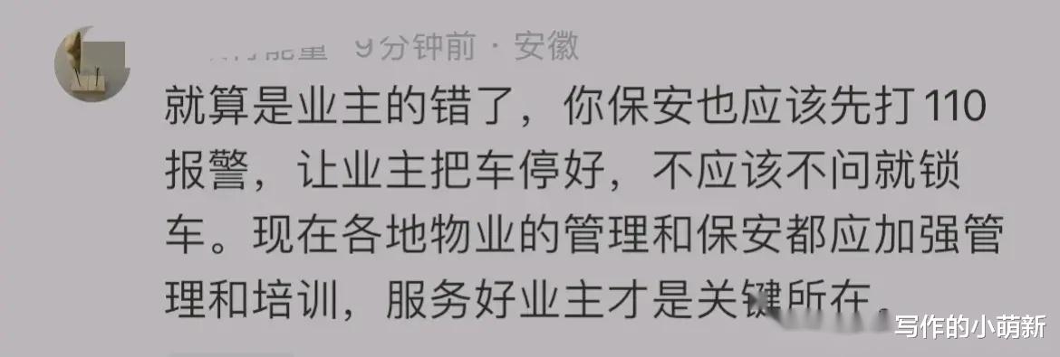 而有的人则持有不同的看法,他们认为,保安之所以会做出如此极端的行为,很大程度上也是因为业主在冲突的过程中,先动手对保安进行了挑衅和攻击,这才导致了保安情绪的失控。在事件的处理过程中,也需要对保安的遭遇给予足够的理解和关注,不能一味地对其进行谴责和指责。