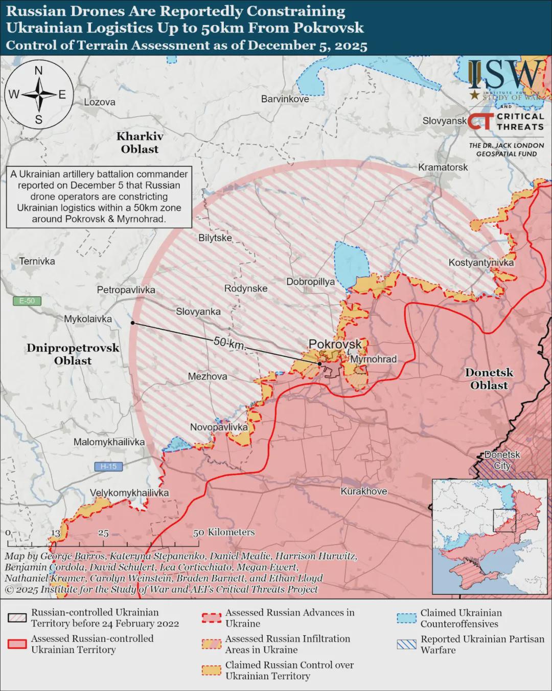 根据美国战争研究所12月5日发布的最新情报,主要有以下关键信息: